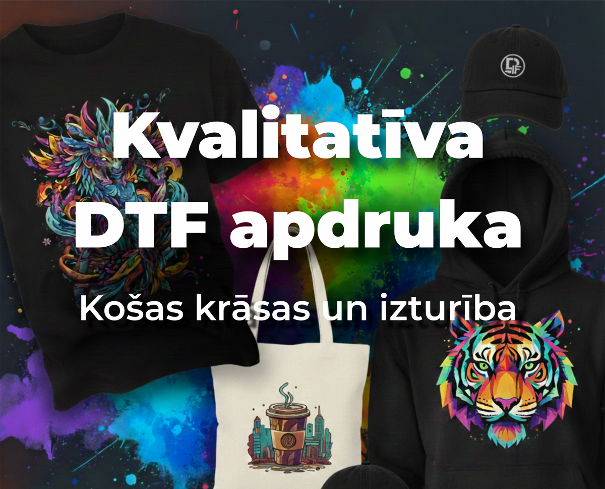 DTF (Direct to Film) ir viena no modernākajām un daudzpusīgākajām apdrukas tehnoloģijām šobrīd. Tā ļauj pārcelt jebkuras sarežģītības pilnkrāsu attēlus tieši uz auduma, nodrošinot izcilu rezultātu gan uz kokvilnas, gan sintētikas.